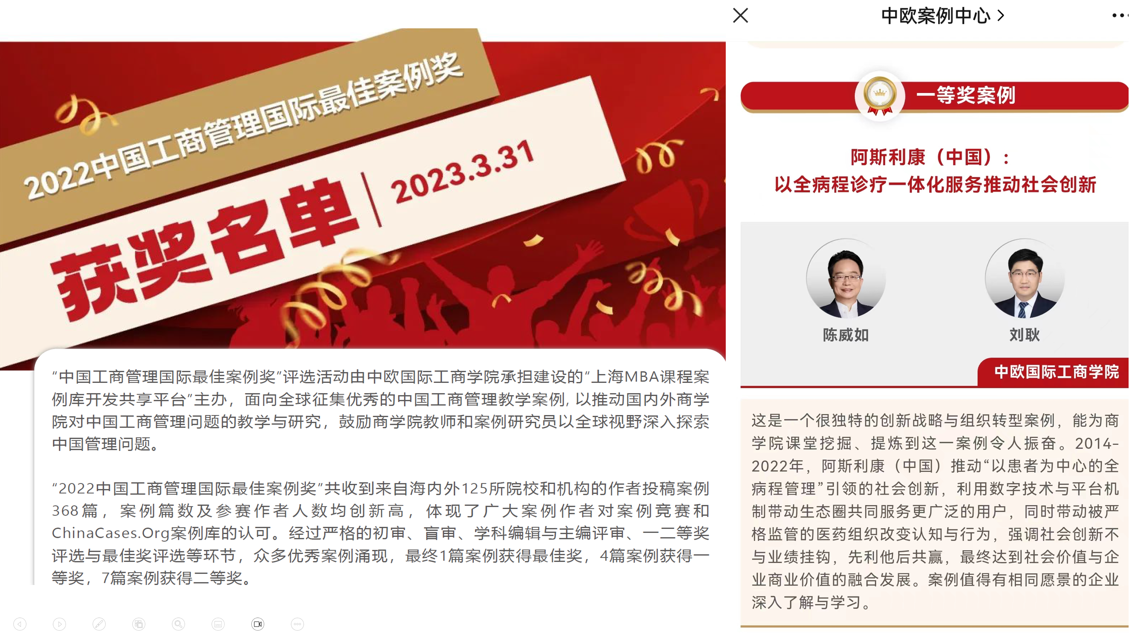 版权声明:本文根据中国工商管理国际最佳案例比赛一等奖《阿斯利康(中国):以全病程诊疗一体化服务推动社会创新》(案列编号:STR-23-032-CC)改编,案例由中欧国际工商学院陈威如教授、案例研究员刘耿共同撰写,已获得案例作者和中欧案例中心授权。未经作者及学院授权,禁止以任何形式对此案例的任何部分进行复制保存或传播。
