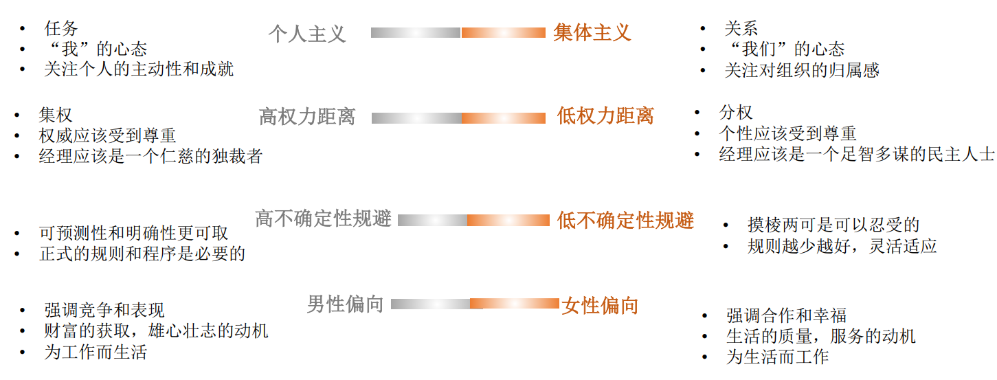 文化维度每天都在影响着企业的运作,包括奖励制度、组织架构、面子问题等。