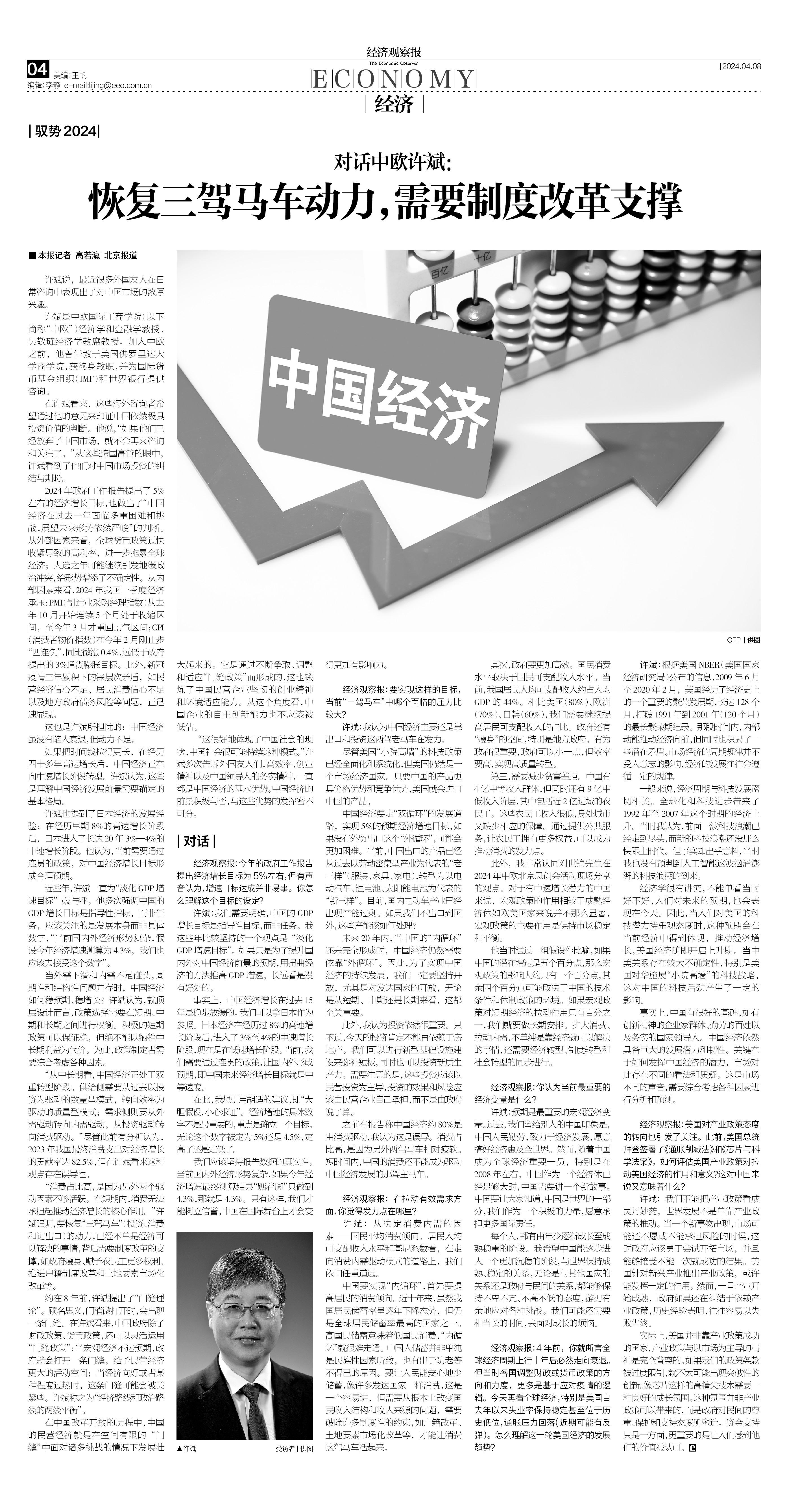 近日,中欧国际工商学院经济学与金融学教授许斌接受了《经济观察报》的专访,对中国宏观经济进行了深度解读与展望。他认为,目前中国经济虽没有陷入衰退,但动力不足。以制度改革为支撑,恢复三驾马车动力,中国经济仍有很好的机会走出低迷,继续走中高速增长的道路。