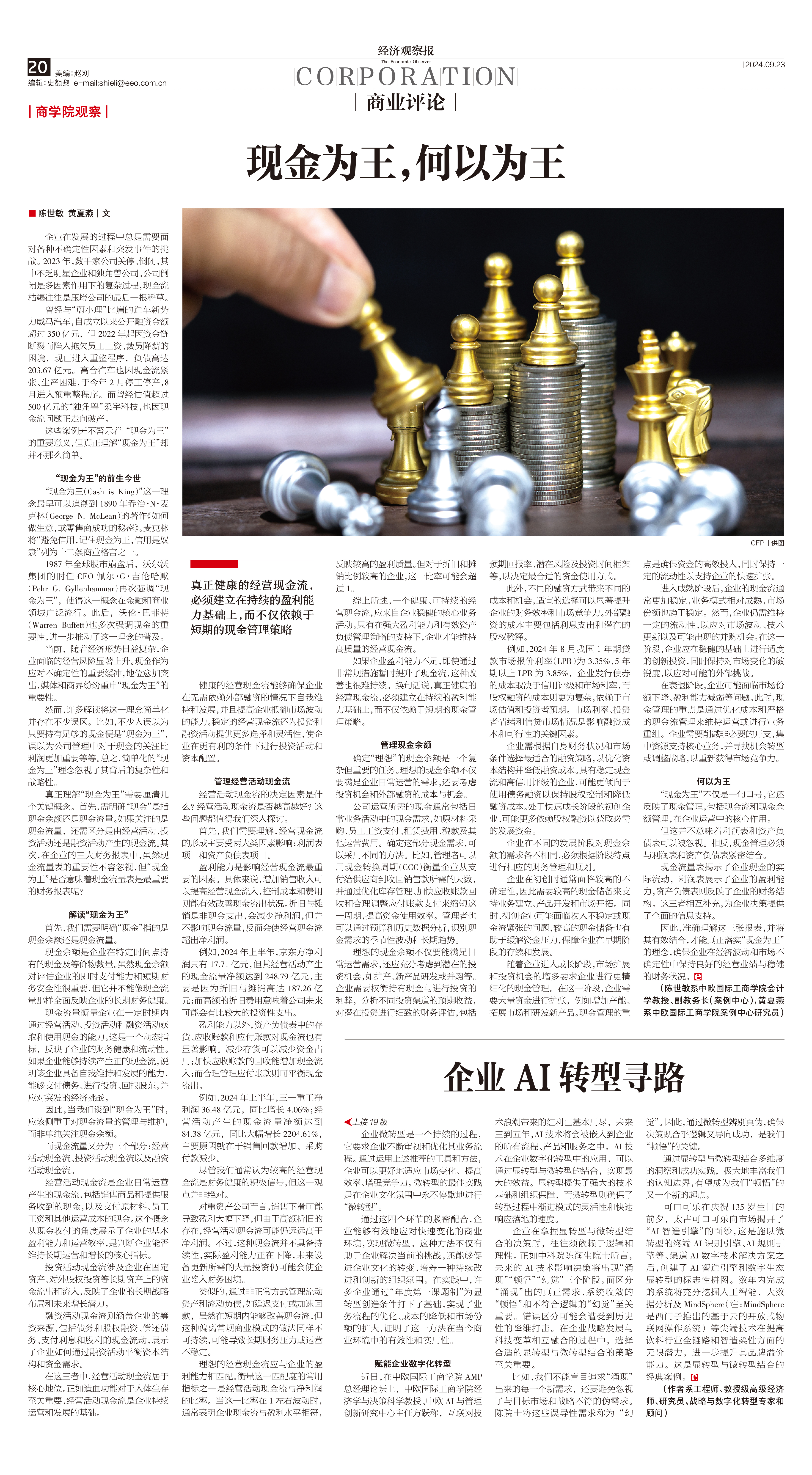 无论是在企业运营还是个人的财务管理中,“现金为王”是个广为人知的重要财务理念,尤其是在经济形势走低或呈现不确定性的环境中,这似乎是增强抗风险能力的重要准则。“现金为王”到底意味着什么?如何才能真正落实到企业的经营活动中?中欧国际工商学院会计学教授陈世敏通过解析“现金为王”背后的涵义,指出真正健康的经营现金流,必须建立在持续的盈利能力基础上,而不仅依赖于短期的现金管理策略。