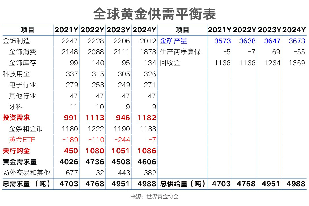从供需关系来看,黄金的需求量在持续增长,但产量增幅有限。据统计,剔除场外交易后的黄金需求量从2021年的4026吨增加至2024年的4606吨,而同期金矿产量仅从3573吨增加至3673吨。这种供需失衡的状况进一步推高黄金价格,凸显黄金在现代经济体系中的重要地位。