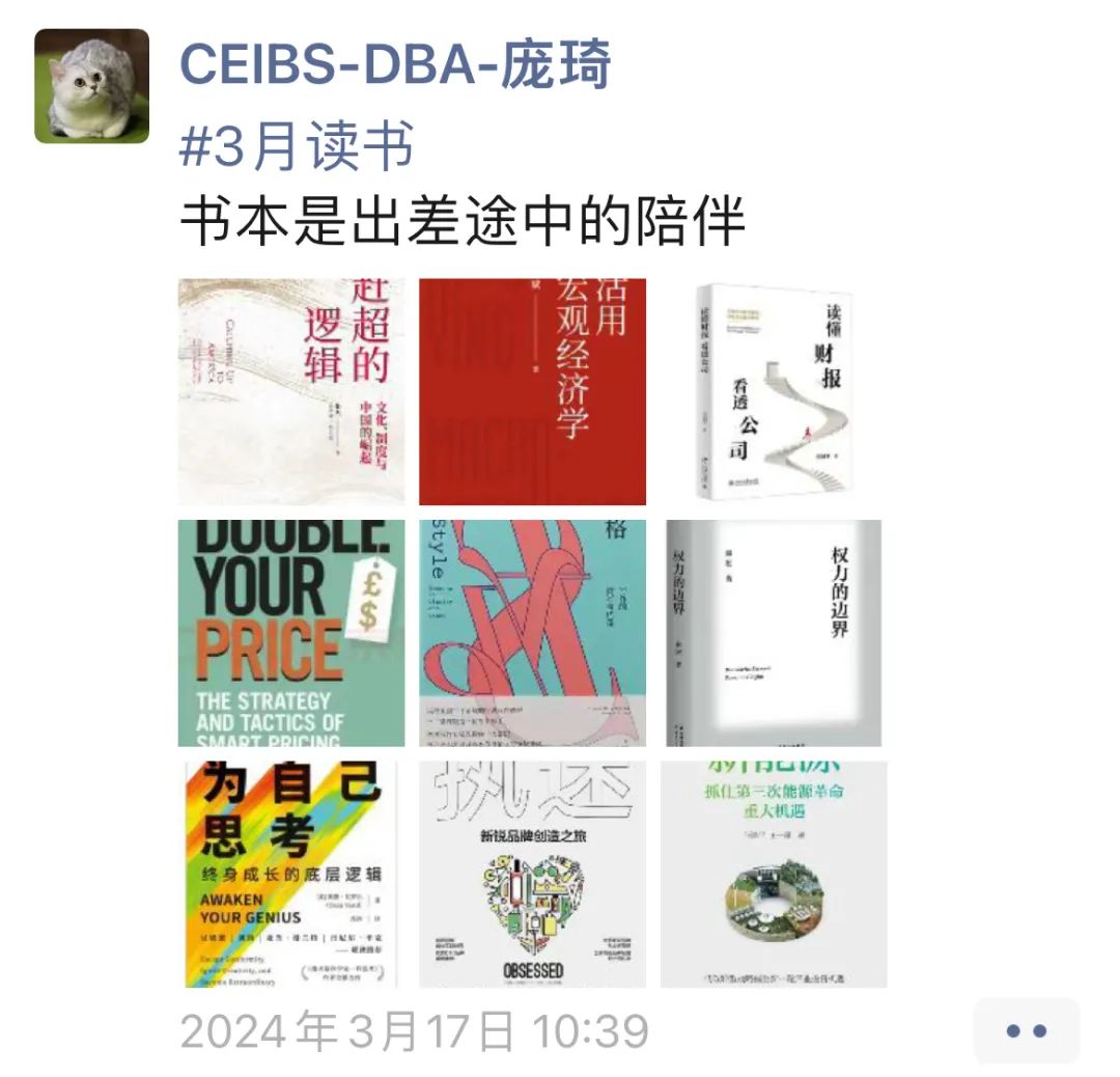 庞琦每月会在朋友圈分享自己的读书笔记。今年5月她获得了中欧图书馆颁发的“阅读之星奖”